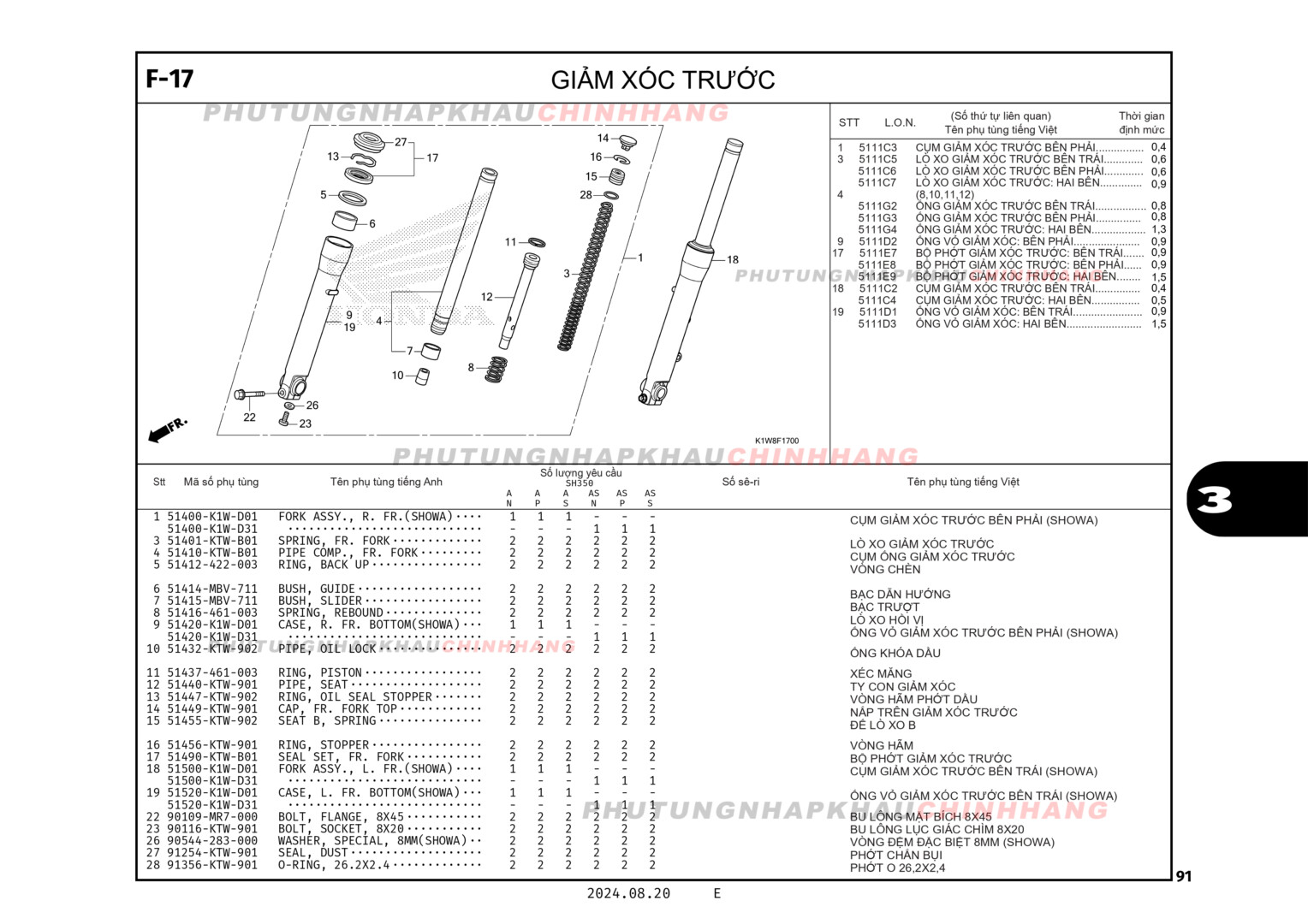 F17 – GIẢM XÓC TRƯỚC – HONDA SH 350 (K1W)